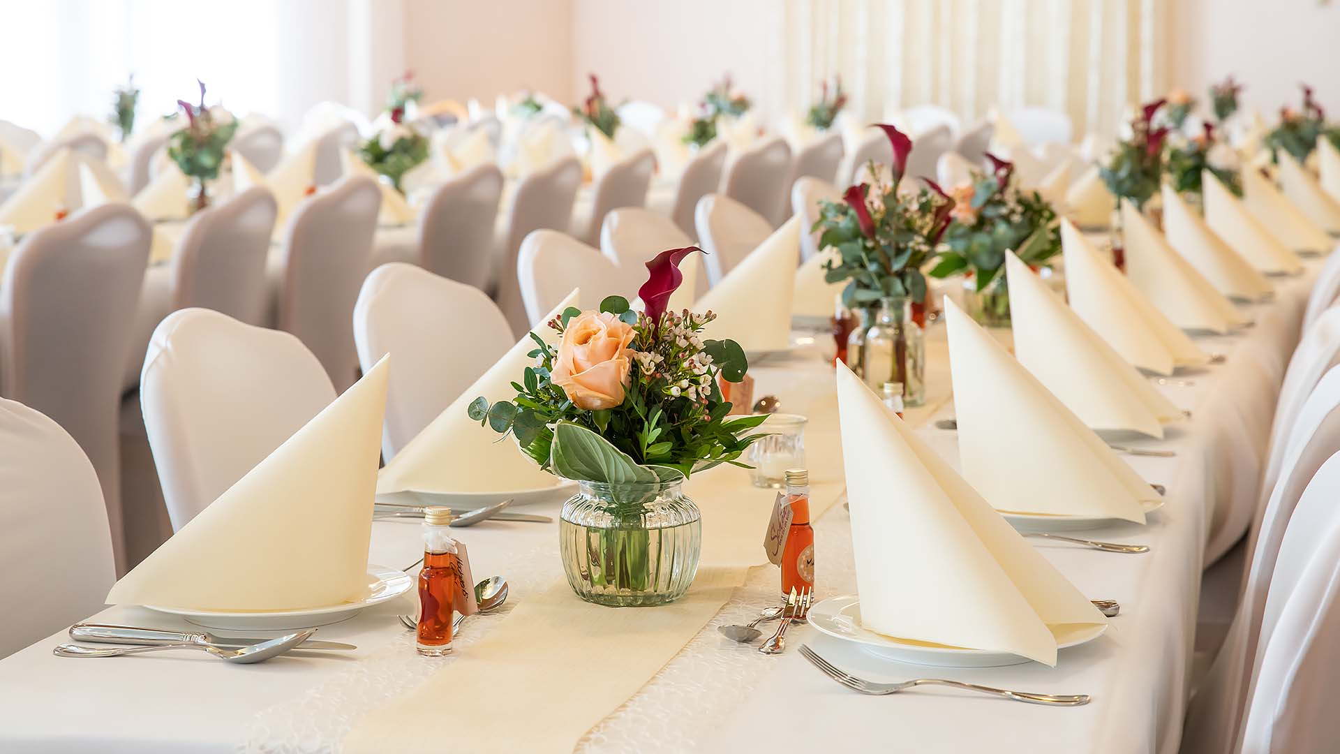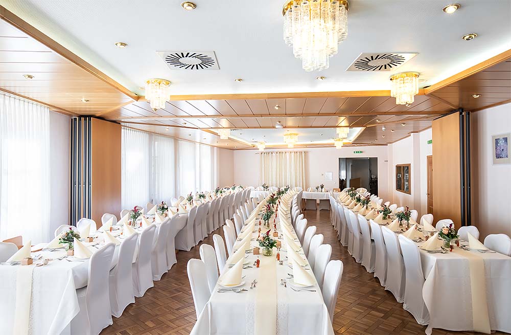 Für festliche Events und kulinarische Genüsse, sind Sie bei uns genau richtig. Ob Hochzeit, Geburtstag, Tagung, Kommunion, Konfirmation oder Taufen – wir bieten einen feierlichen Rahmen für jeden Anlass. Wir organisieren Ihre Feier ganz flexibel nach Ihren Wünschen (Tischschmuck, Essen, Trinken, etc.). Sie entscheiden, ob Sie Ihren Gästen ein festes Menü oder ein Buffet bieten oder lieber nach Speisekarte essen möchten. Größere Feiern bringen einigen Planungsaufwand mit sich. Deshalb sollten Sie sich mindestens 3 Monate vorher bei uns melden, damit wir prüfen können, ob der gewünschte Termin noch zur Verfügung steht.