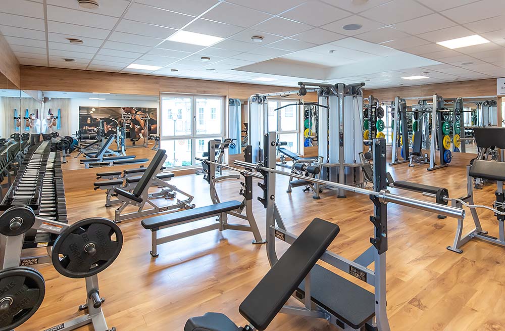 Hotelgäste können unser hauseigenes Fitness-Studio „Fit am Fluss“ – direkt neben dem Hotel – kostenlos nutzen. Auf 500 m2 gibt es verschiedene Trainingsbereiche für Cardio- oder Zirkeltraining und einen Freihantelbereich. Alle Bereiche sind mit modernsten Fitnessgeräten von Hammer Strength ausgestattet.