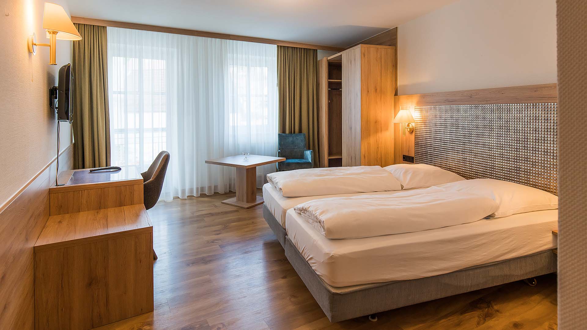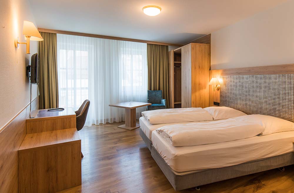 Unsere Komfortzimmer verfügen über einen Balkon mit Blick auf den kleinen Fluss „Leinleiter“. Die Doppelzimmer sind modern und gemütlich eingerichtet und haben ein Bad mit Dusche.