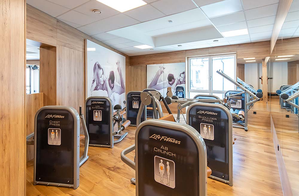 Hotelgäste können unser hauseigenes Fitness-Studio „Fit am Fluss“ – direkt neben dem Hotel – kostenlos nutzen. Auf 500 m2 gibt es verschiedene Trainingsbereiche für Cardio- oder Zirkeltraining und einen Freihantelbereich. Alle Bereiche sind mit modernsten Fitnessgeräten von Hammer Strength ausgestattet.